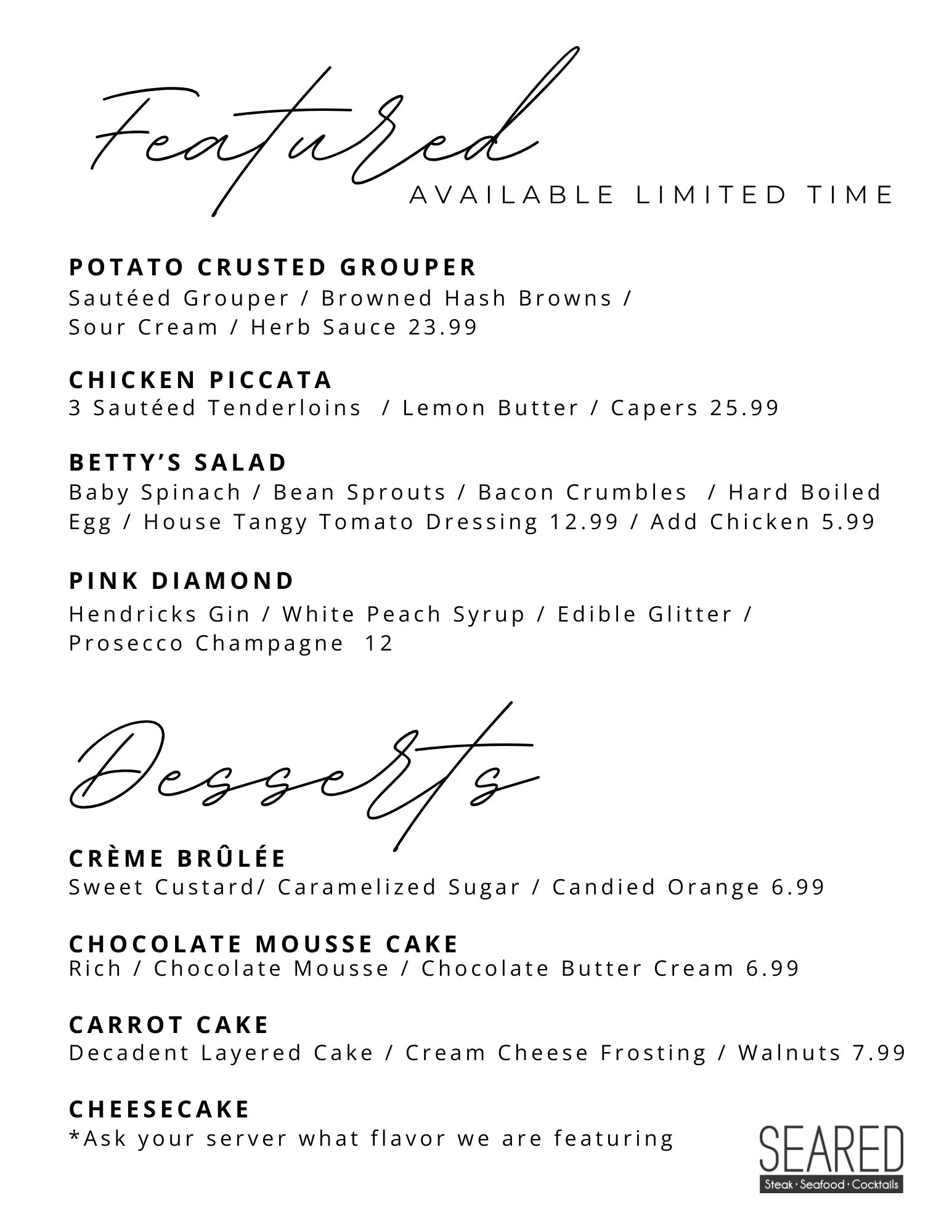 ©2026 Seared | Steak, Seafood, & Cocktails All Rights Reserved.